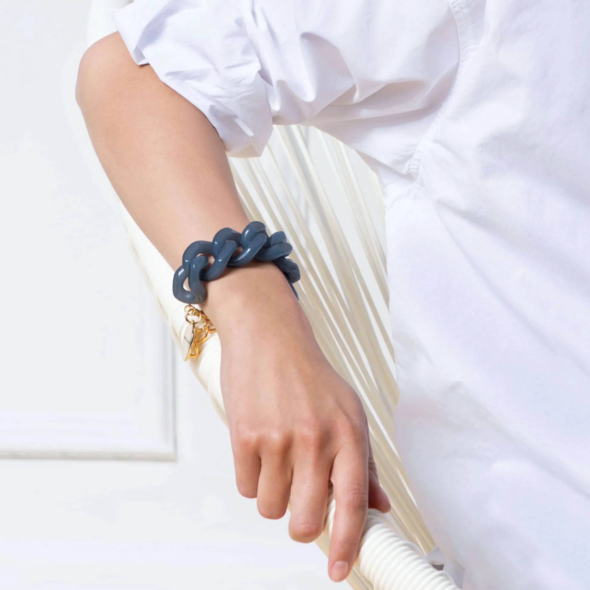 Die Opulenten Acetat-Glieder Schmiegen Sich Ums Handgelenk.