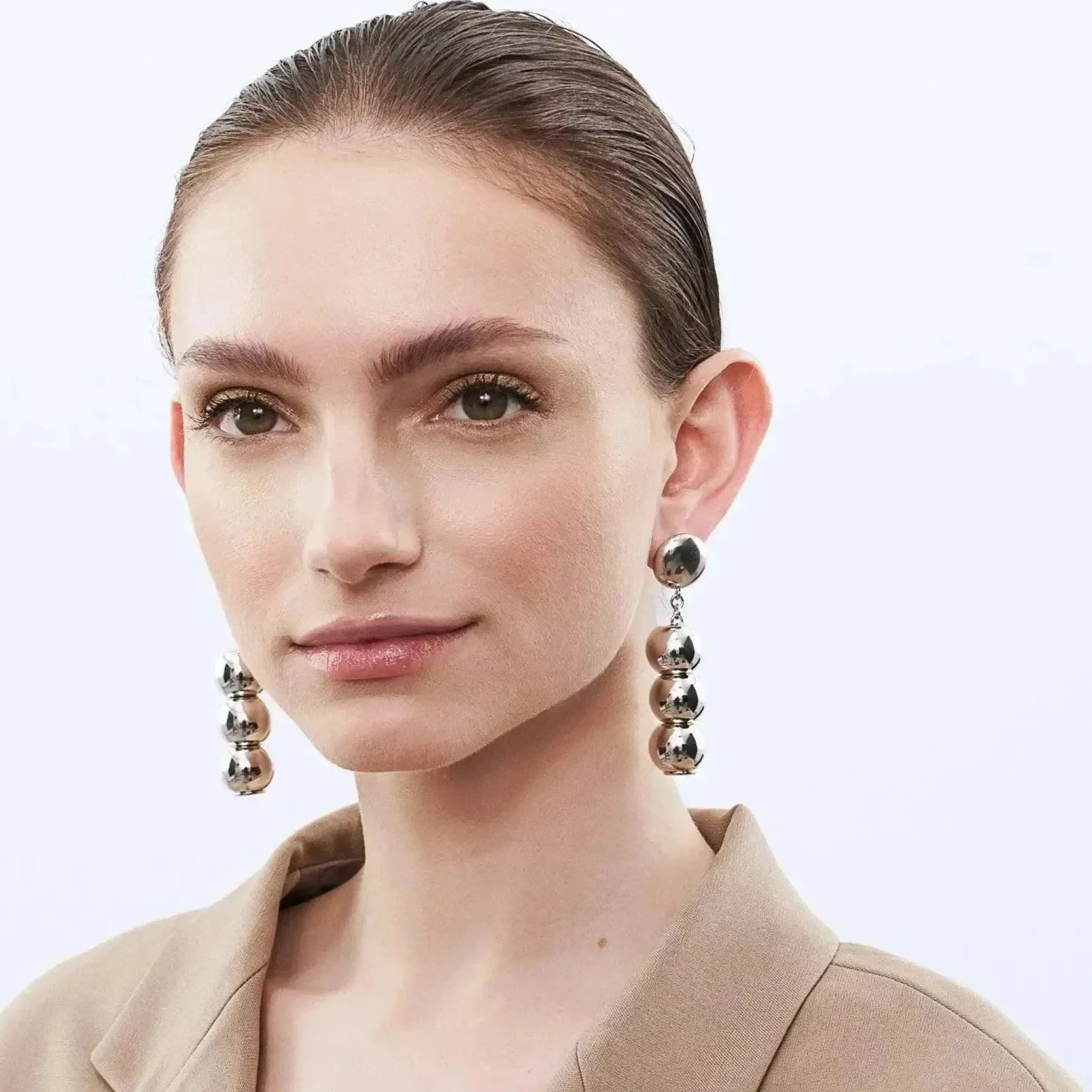 Ein Ohrring Zeitloser Eleganz Und Subtiler Schonheit. Mit Seinen Vier Verbundenen Acetat-Elementen Im Silber Look Verleiht Der Small Beads Earring Maximale Asthetik Und Anmut Beim Tragen. Nicht Nur Ein Einfaches Schmuckstuck, Sondern Ein Wahres Statement Fur Deine Individuellen Outfits. Ein Garantierter Blickfang In Jedem Moment.