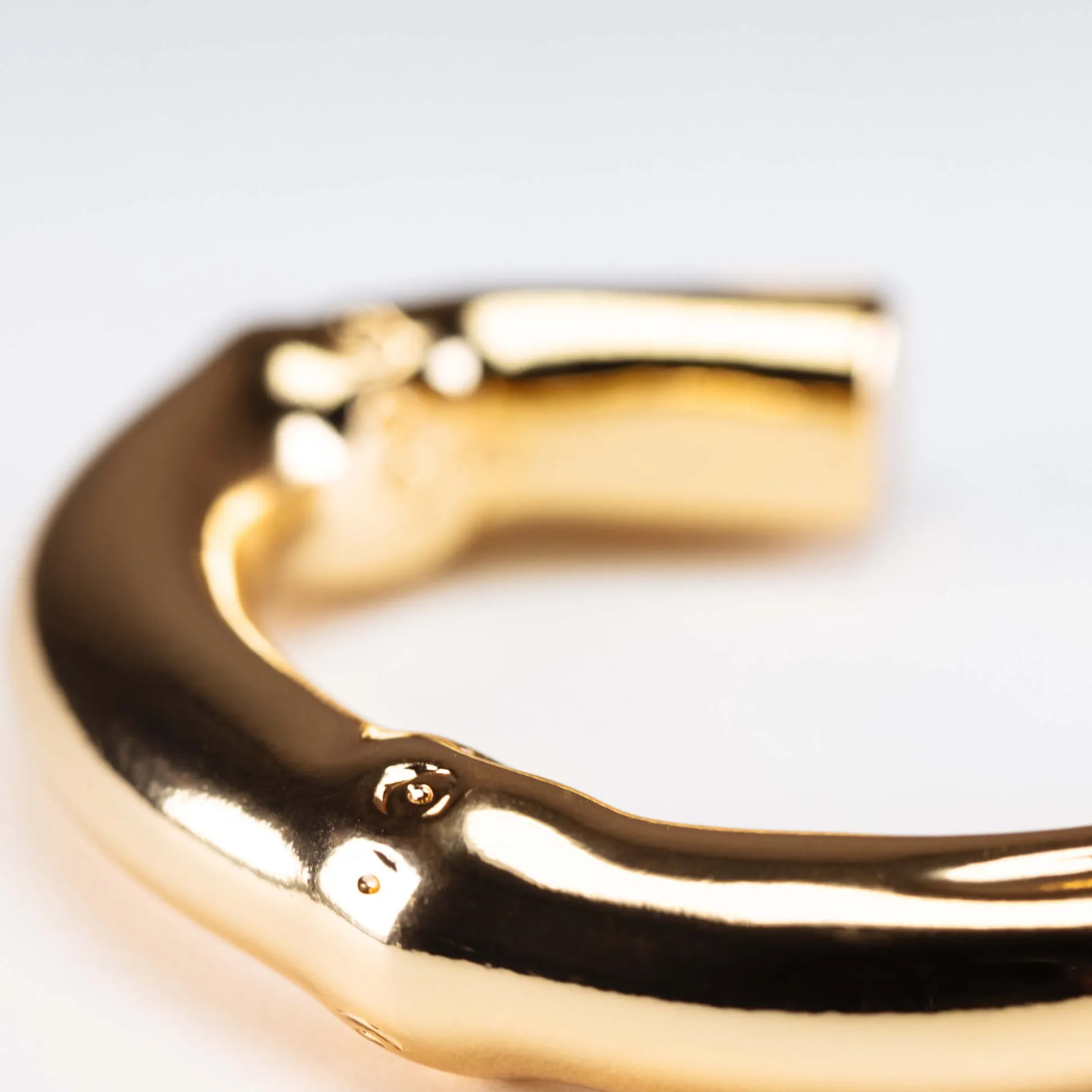 Dieser Offene Bamboo Cuff Bangle Mehr Als Nur Ein Armreif. Die Vom Bamboo-Stil Gepragte Form Hebt Sich In Jedem Look Durch Die Einzigartige Asthetik Ab. Ein Unikat Und Statement-Piece, Welches Sich Sanft Um Das Handgelenk Schmiegt Und Konstantes Gefuhl Von Anmut Verleiht.
