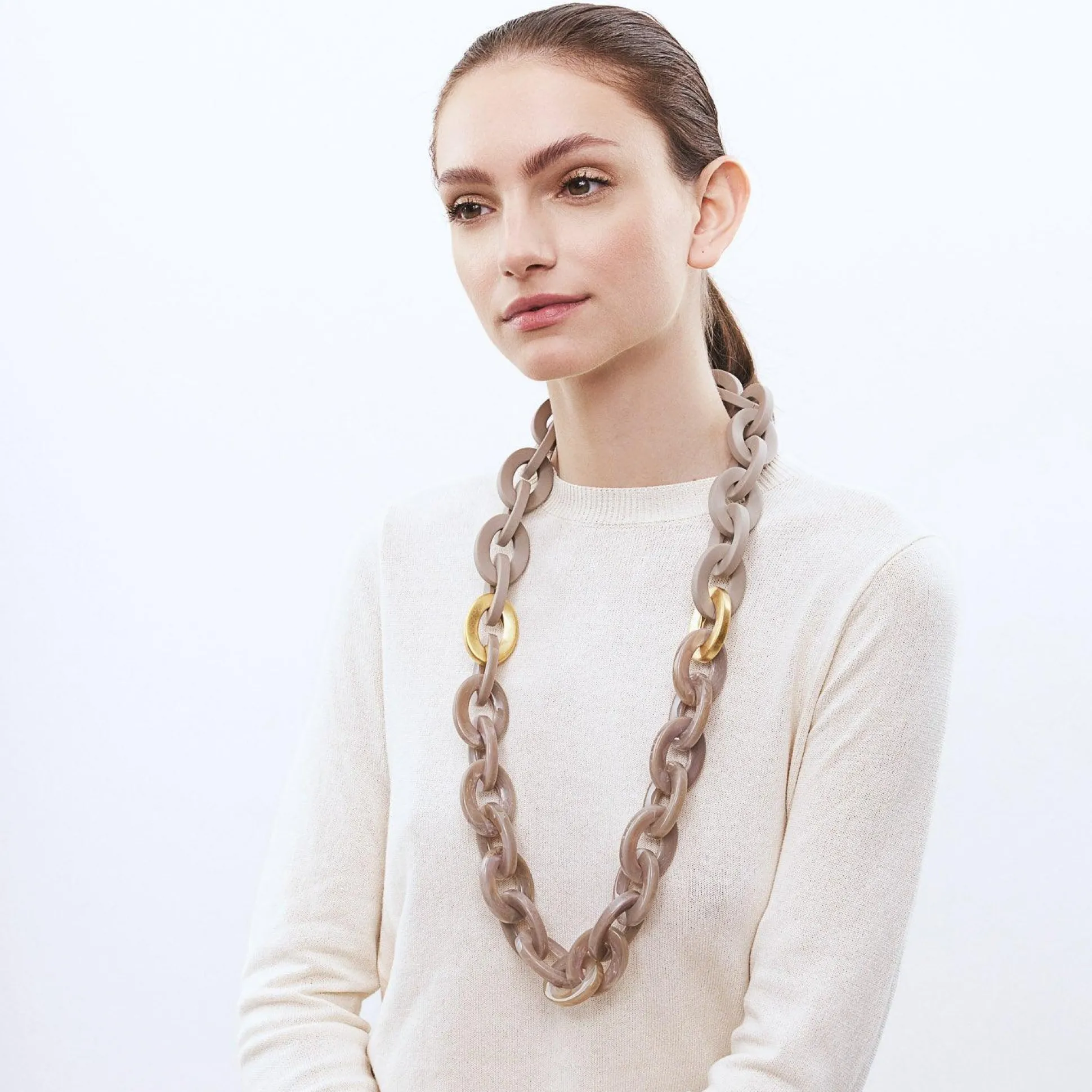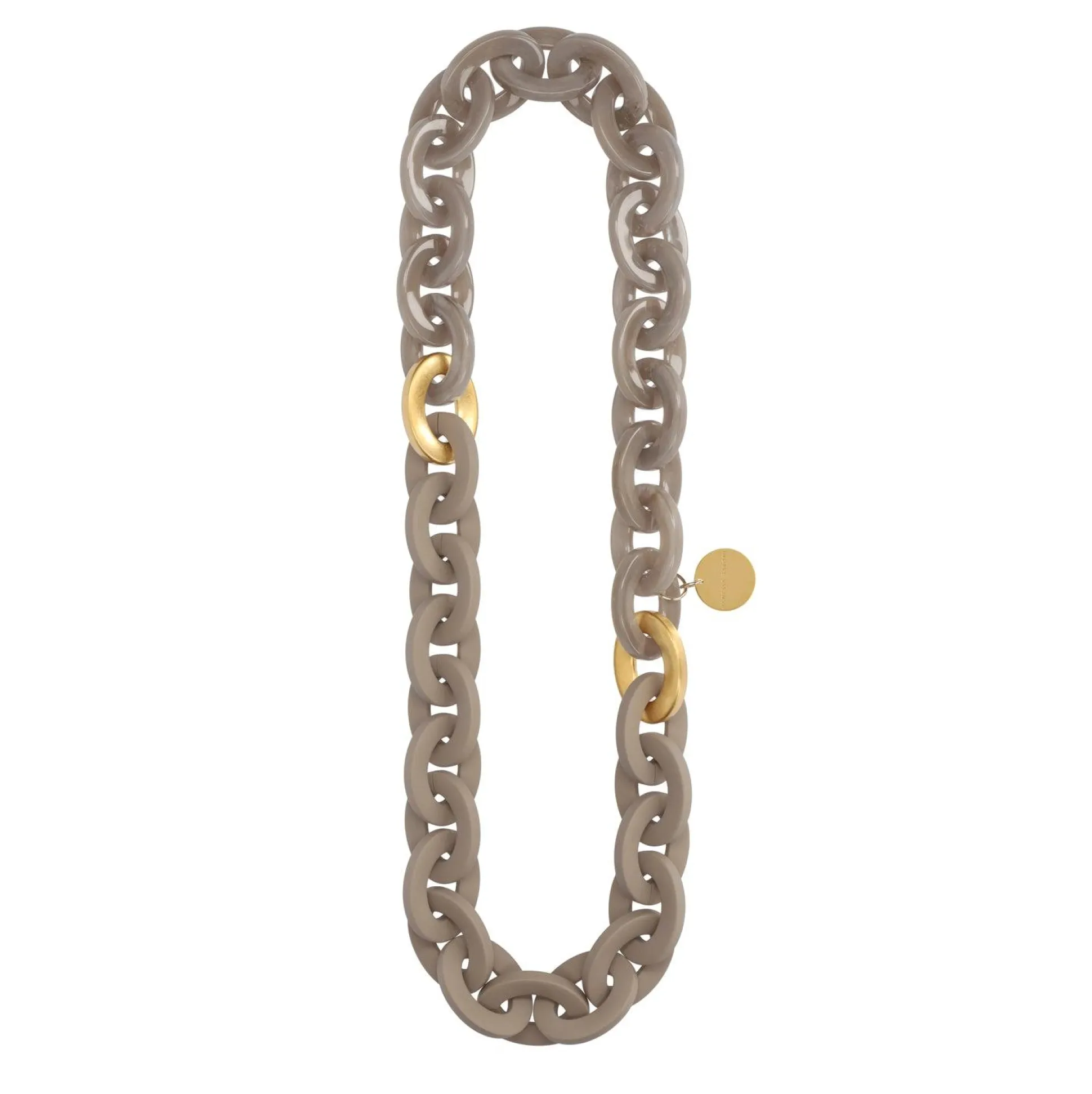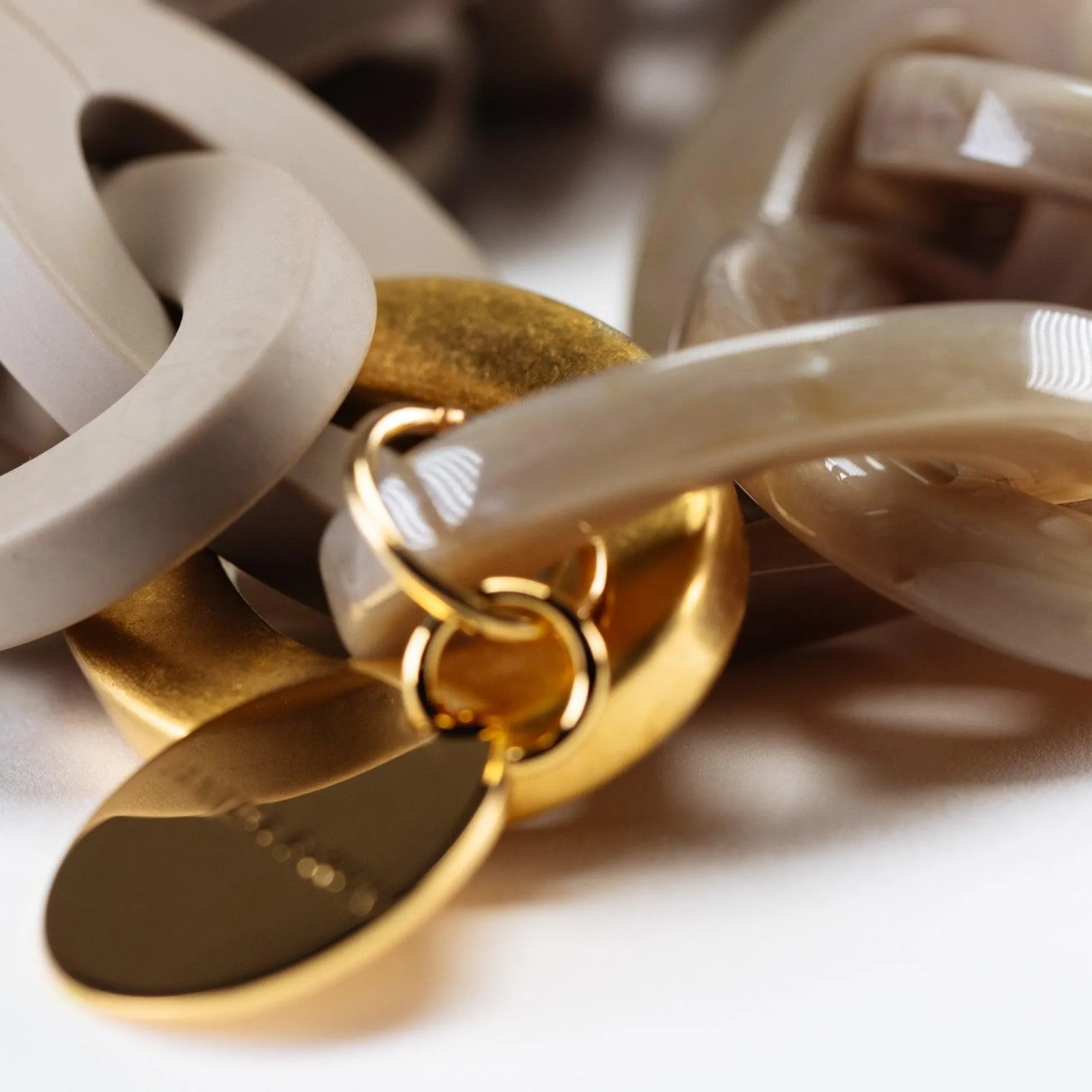 Vanessa Baroni Halsketten|Oval Necklace Long With Gold – Greige Marble – Matt Light Taupe