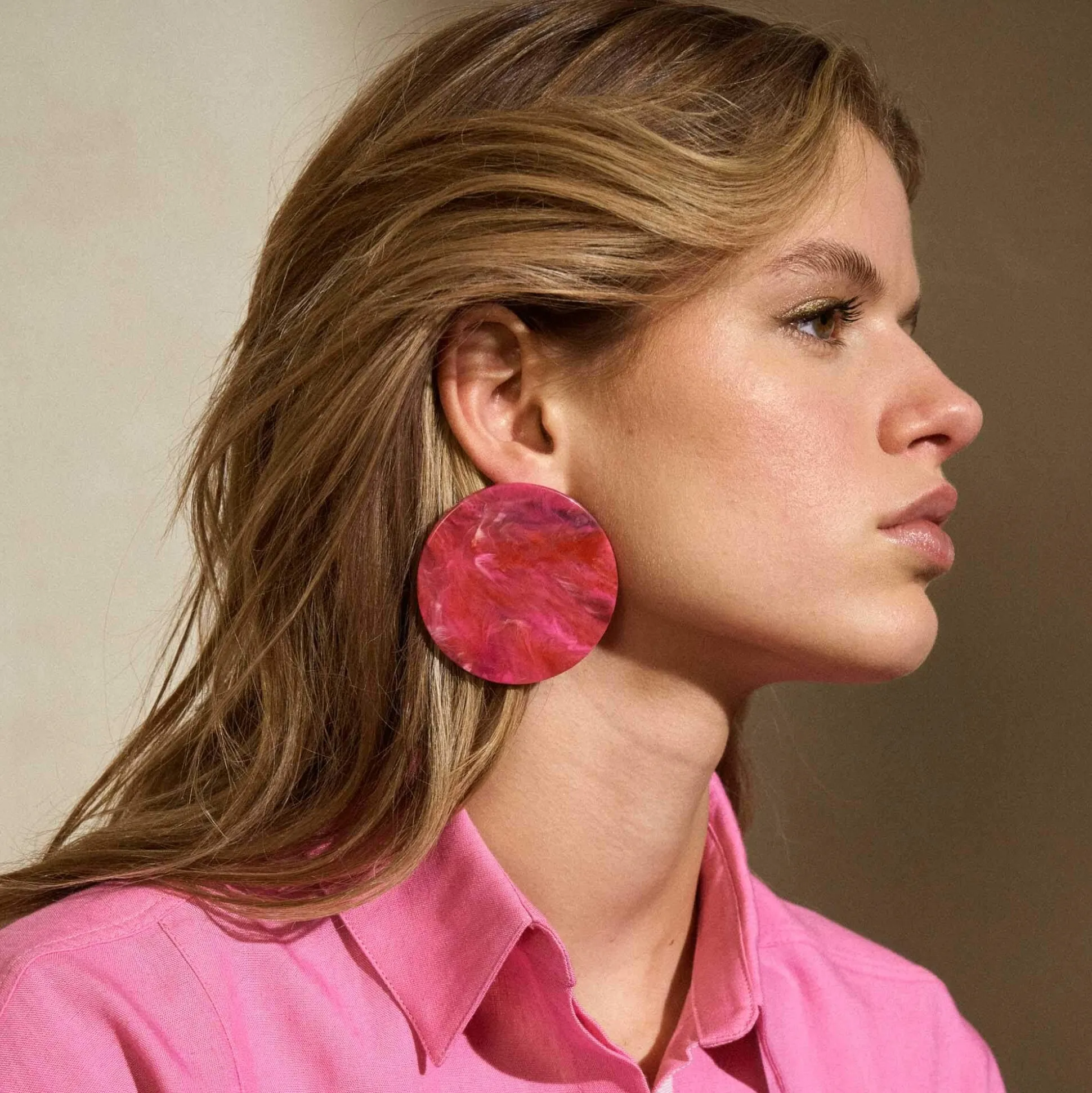 Go Big – Dieser Ohrring Bringt Maximale Asthetik In Jeden Deiner Looks. Die Runde Oberflache Aus Federleichtem Acetat Rundet Das Outfit Perfekt Ab Und Zieht Alle Aufmerksamkeit Auf Sich.