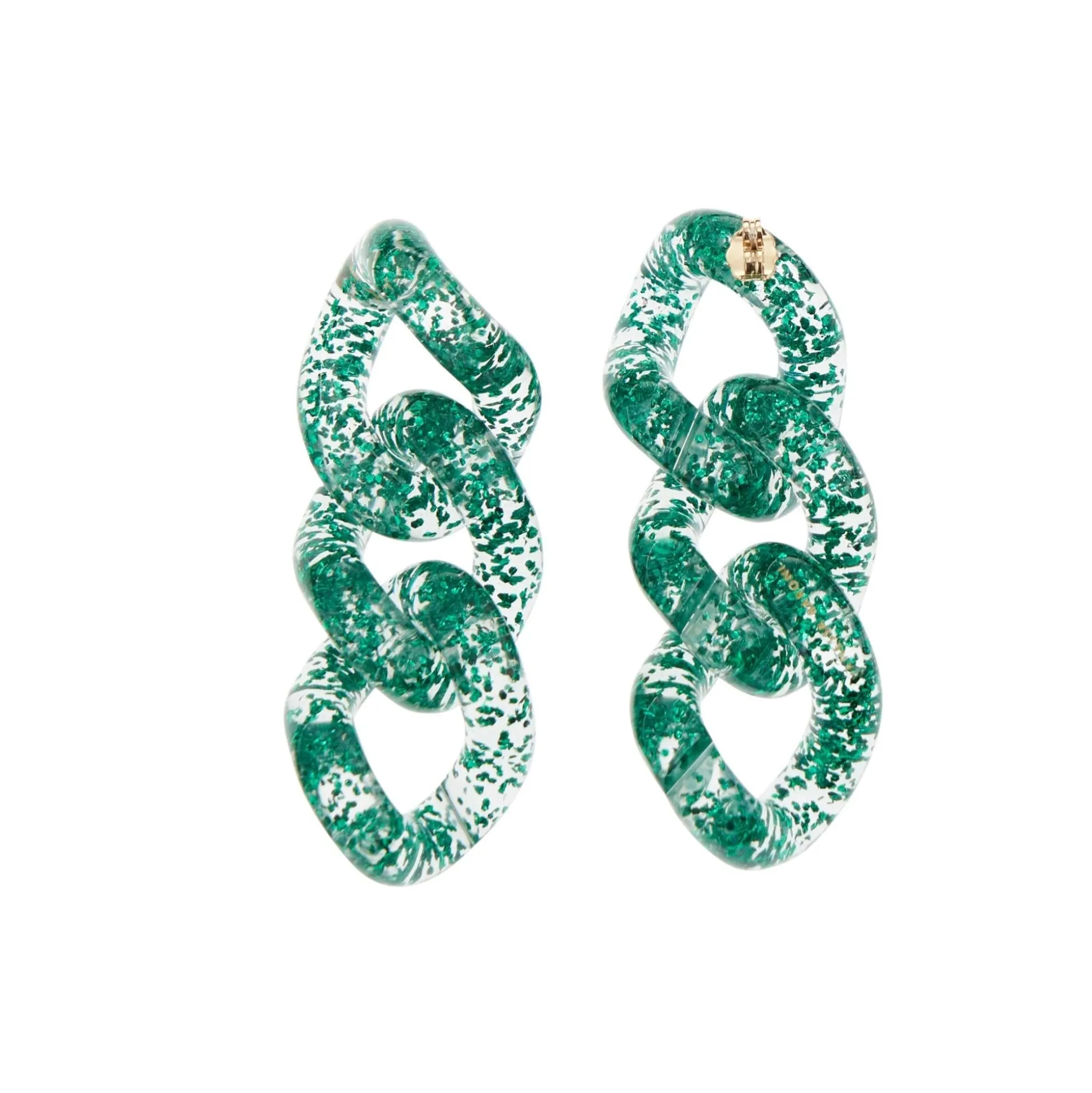 Vanessa Baroni Ohrringe|Flat Chain Earring Green Glitter